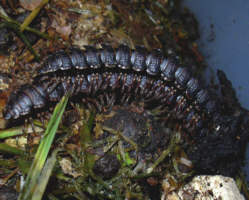Haltung: Bei Temperaturen zwischen 22 und 26°C. Becken mit großen Mengen and morschem Holz und Laub. Das Wehrsekret ist, im vergleich zu anderen Bandfüßerarten, nicht sehr stark.