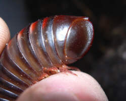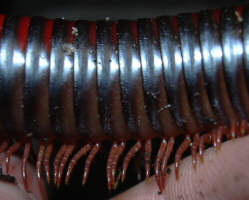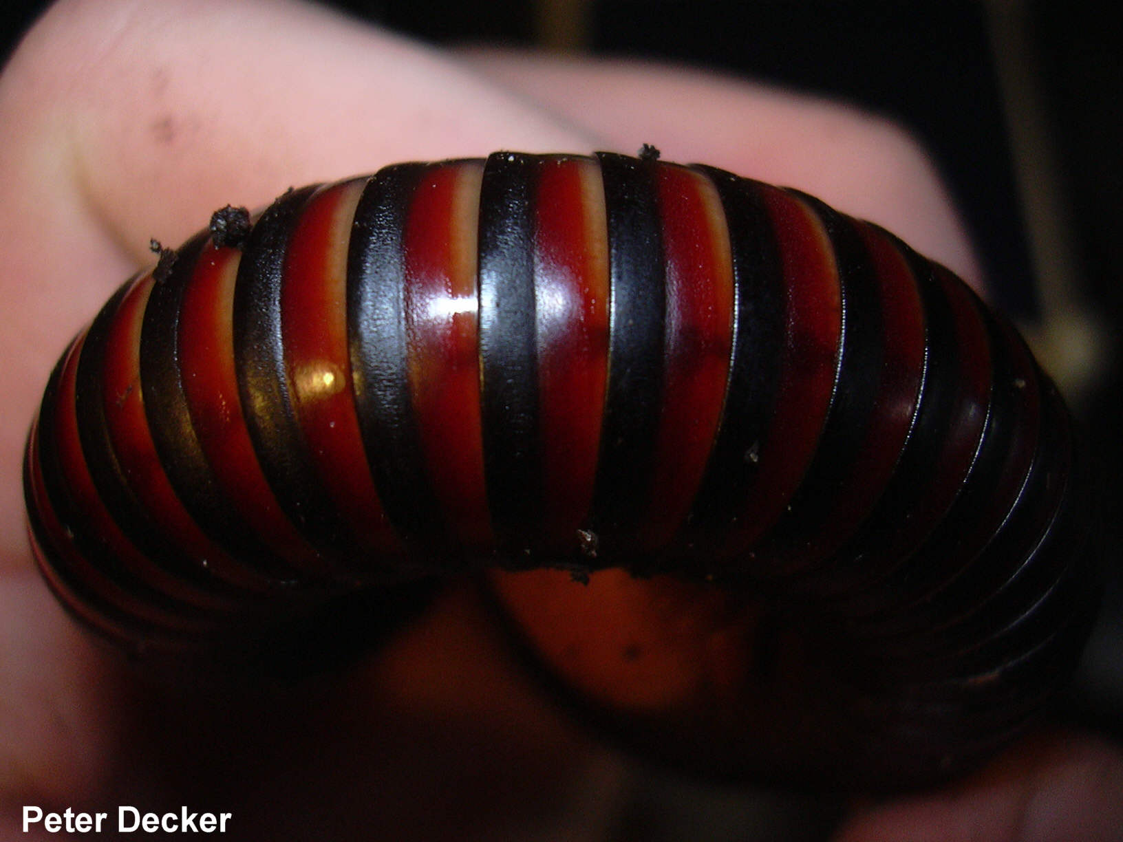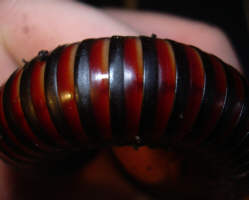 Beschreibung: Große kräftige glänzende Art. Vorderer Abschnitt der Doppelsegmente (Prozonit) oberhalb der Wehrdrüsen kirschrot, unterhalb der Wehrdrüsen hellbraun. Hinterer Abschnitt der Segmente (Metazonit) dunkelbraun bis schwarz. Analsegment und Analklappen dunkelbraun, der obere Abschnitt und der Rand der Analklappen rot, der untere Abschnitt aufgehellt.