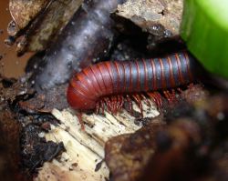 Bemerkungen: Selten im Handel erhältlich. Auch für Anfänger geeignet. Die Art wird unter dem Namen Feuerholztausendfüßer angeboten.